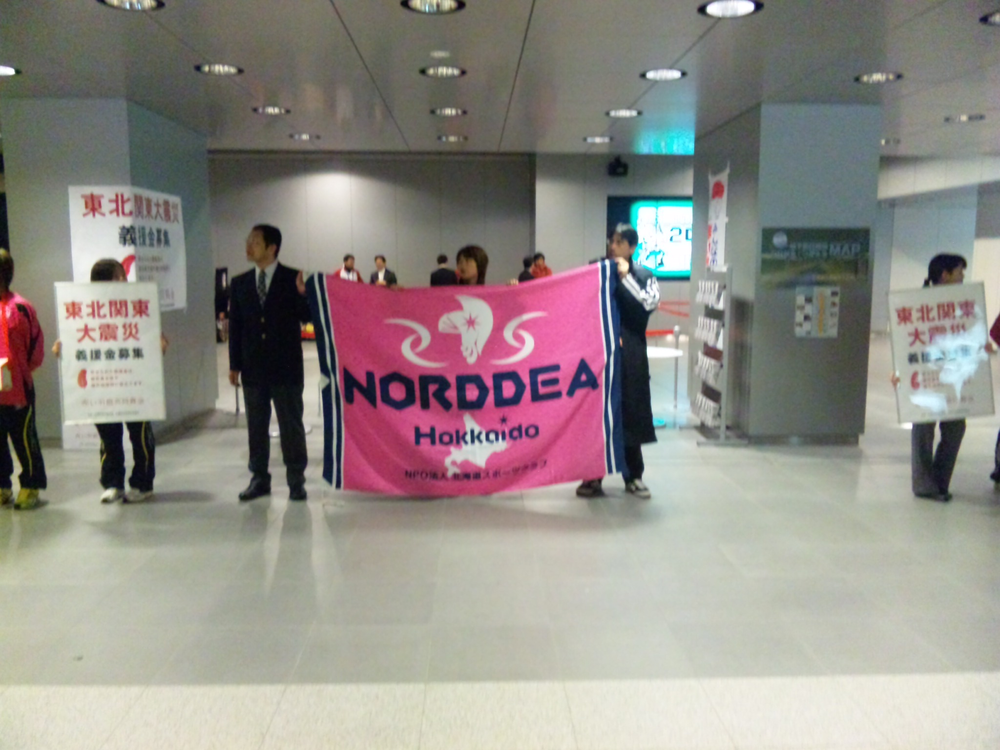 札幌地下道北3交差点で行われた、コンサドーレ&ノルディーアの義援金募金に寄付しに行きました。