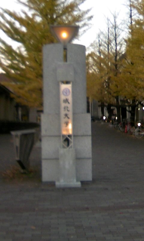 なまら面白かった!! 特筆すべきは美人刑事・福家警部補のキャラクターですよね。 のほほーんとしていてマイペースなのですが、頭はキレる。あの独特の雰囲気がツボにはまりました。 ああいう役柄はなかなかに難しいですよ。下手なアイドル上がりの役者がやったら、目も当てられない事態になると思います。 この女優さん、ただ者ではない!と思って調べてみました。 永作博美(ながさくひろみ)。1970年生まれ。 ……!? 1970年!?三十……八? 信じられない! 多少若作りしてるにしても、僕より10も年上とは思わなかった! けど、前からテレビに出ていた有名な役者さんなんですね。知りませんでした。不勉強ですみません~(汗)。 元はアイドルらしいですが、年の功でしょうか、演技上手でした。 ドラマの内容も、知的な駆け引きがあって楽しかった。 敢えて言えば、犯人が最初の殺人を犯すに至った詳細をもう少し描いてもらえたらもっと良かったかも。 小泉孝太郎(役名忘れた)とのコンビも良かったですよ。 元は小説らしいですね。読んでみたくなりました! 小説ではこの「オッカムの剃刀」の他にも幾つか「福家警部補」シリーズがあるそうなので、是非連ドラ化してほしいな。 連ドラ化されたら、こっちの「相棒」コンビにも注目! あ、最後にもうひとつ。 「福家警部補-」で出て来た「城北大学」、うちのすぐそばの大学です。 あ、もちろん実際の大学名は違いますよ。ロケ現場がうちの近くだってことです。 11月~12月くらいに盛んに撮影やってたから、何だろう?と思ってたんですが、これだったんですね。 添付した写真は、たまたま撮影現場を通った時に撮った写真です。「城北大学」の看板がいかにも取って付けた感じでしょう? 何かの折にはブログのネタに使えるかなぁと思って撮っておいて良かった!(笑)