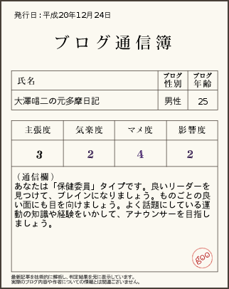 先日、gooの「ブログ通信簿」なるものを見つけて、やってみました。