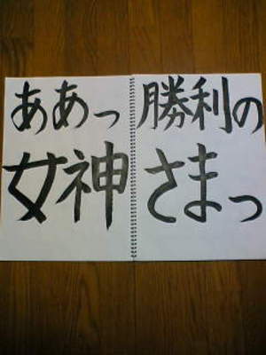 ちょうどドールズブログも最終戦の様子がアップされたところですしね。 コンサドールズとは、コンサドーレ札幌専属のダンスドリルチームです。 コンサドーレのホームゲームでは毎試合華麗な舞を披露し、サッカーの試合に花を添えています。 キックオフ50分前と、キックオフ直前、それにハーフタイムにパフォーマンスをしてくれます。 50分前のパフォーマンスでは、「アウェイドールズ」と呼ばれる一団がアウェイ側B自由席に登場し、コンサドールズと一緒に踊るのが名物となっています。実は僕もアウェイドールズの一員w。 個人的には、「添え物」ではなく、「メインディッシュ」として、コンサドールズのステージがあるといいな~、なんて思うのですが、まあそれはそれ。 12月6日、札幌でのホームゲーム最終戦に行きました。 僕は現在東京在住ですが、札幌移住を目論んでおり、来春から住む家探し……という名目でコンサのホームゲームへ。いや、実際家探しもしたんですよ。いい家が見つかったんですが、今度はその資金繰りで、今、四苦八苦してます。 それはさておき、6日の試合、結果的には、鹿島の優勝を目の前で見るという、いわば鹿島の優勝へ向けた「踏み台」みたいな役割になってしまったのですが、そんなことは僕にとってはどうでもいいのです。そう、お目当てはコンサドールズなのですから。 浦和戦ではちょっとゴタゴタしてしまったので、あらかじめHFCに電話で確認。アウェイ側B自由席にコンササポ用のエリアはありますか? そこでアウェイドールズをやっても大丈夫ですか? と。大丈夫ですとの答えに安心して当日を迎えたら……、コンササポ用エリア、狭っ!! アウェイ側B自由席のコンササポ用エリアが予想以上に狭かったので、ちょっと早めに行って席確保。 しかし、心配していたほど混雑することはなく、ビッグドーレくんを持ってきた仲間が徐々に集まってきて、ダンスエリアは確保できました。 最後とあって、いろいろ皆さん趣向を凝らしていらっしゃって、トナカイの角のカチューシャを持ってきてくれた方もいました。その角、いきなり折っちゃったんですけどね。 例年ですとコンサドールズユースの子たちが、トップチームのメンバーからのメッセージ付きお菓子を配ってくれるんですけど、今日はユースも出演ということで、ドールズトップキャプテン野口悠羽さんのお母様と、ドールズのコーチ、それに、体調面の理由かな? その日出演していなかったサテライトの平田野乃実さんがお菓子を配りに来てくれました! なぜこの日出演されなかったのか、ちょっと気がかりではありますが、個人的には野乃実さん、優劣付けがたいドールズメンバーの中でもお気に入りのメンバーなので、嬉しかったです。 そして、今年最後の50分前のパフォーマンス、「Wake me up!!」。 関係ないですけど、本当に「誰か俺を起こしてくれぇ!」ってくらい今年1年何もしなかったなぁ。寝てばかりいた……。まあ、おかげで心身ともに安定はしてきたんで、悪いことばっかりじゃなかったですけどねぇ。 まま、話を戻して、最後のダンス! かなり楽しかったです。 最近アウェイドールズのメンバー、一時期に比べて減る傾向にあった(らしいです。最近あまりホームゲーム行ってないからよくわからない)のですが、さすがに最終戦は結構な数集まりました! ダンスをして、みんなで盛り上がりました! 50分前のパフォーマンスは「アウェイドールズ」で盛り上がれて楽しいのですが、試合開始直前のパフォーマンスもまたいいんですよ。 というのは、僕はこのときホーム側SA自由席(メインスタンドの端)の最前列に座ったのですが、ここ、試合開始直前のパフォーマンスでは目の前にドールズが来るんです! メインスタンドに沿ってずらーっと10人のコンサドールズが並ぶので、こっち側に来た子は顔もはっきり確認できるんです。 今日、こっちの席に来るのは誰かな~? あの子が来たら嬉しいな~♪ と思っていたら、 キタ━━━━━━(゚∀゚)━━━━━━!! 目の前に来たのは、僕の一番好きな、河原こむぎさん! そこで、このスケッチブックを広げました! 完全にヲタクな怪しいヤツですよね……。あはははは……。すみません(汗)。 でも、こむぎさん、きちんとこちらを見てアピールして下さいましたよ。 そのあとのコンササポの飲み会でも、 「いやぁ、ドールズはやっぱり元多摩君を認知してるんだってよくわかったよ。ちゃんと元多摩君の方を向いてたもんねぇ」 と言って下さった仲間もいました。 そういうわけで、決してヲタクなヤツだと毛嫌いされているわけではなく、むしろ歓迎されている……のだと……、思い……たい……(弱気)。 これでも、追っかけながら、常に心のどこかで「迷惑がられてないかなぁ……」ってのは気にしてるんですよ。僕、シャイなんで。 でも、この時は、目の前のこむぎさんの笑顔に完全に悩殺されてました。もうデレデレ。 もちろん、こむぎさんだけが好